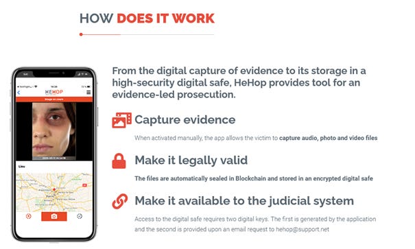 HeHop is offering victims of domestic violence a way to document their injuries. They can upload videos and images which are time-stamped and can be used as legal evidence in courts.