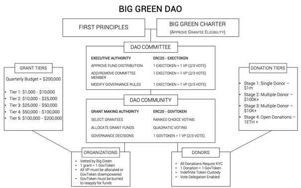 Another approach is to use the blockchain technology for governance tools. There are many examples but Big Green DAO is an outstanding example. Personally, I am not sure that this is the best of all possible governance structures but it clearly shows the potential for other purposes. Where else are beneficiaries allowed to vote on the next cohort of beneficiaries? How else could you experiment with different voting mechanisms such as ranked choice voting or quadratic voting?