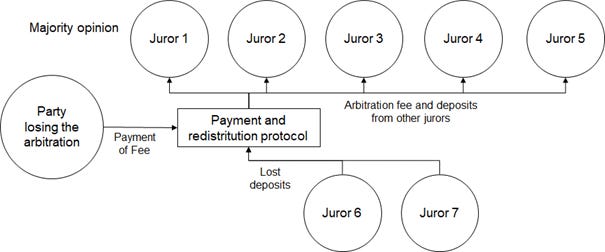 The second wave was when things became interesting. Entrepreneurs started to take full use of the underlying technology. You could implement approaches based on game theory to build digital courts such as in the case of Kleros. Participants deposit amounts which they lose when they are not part of the majority opinion.